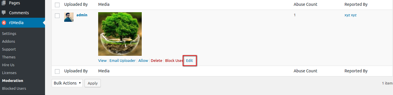 The site admin first needs to enable the Moderation option from Moderation > Moderation Settings under rtMedia admin settings.
