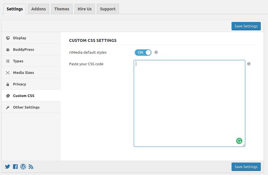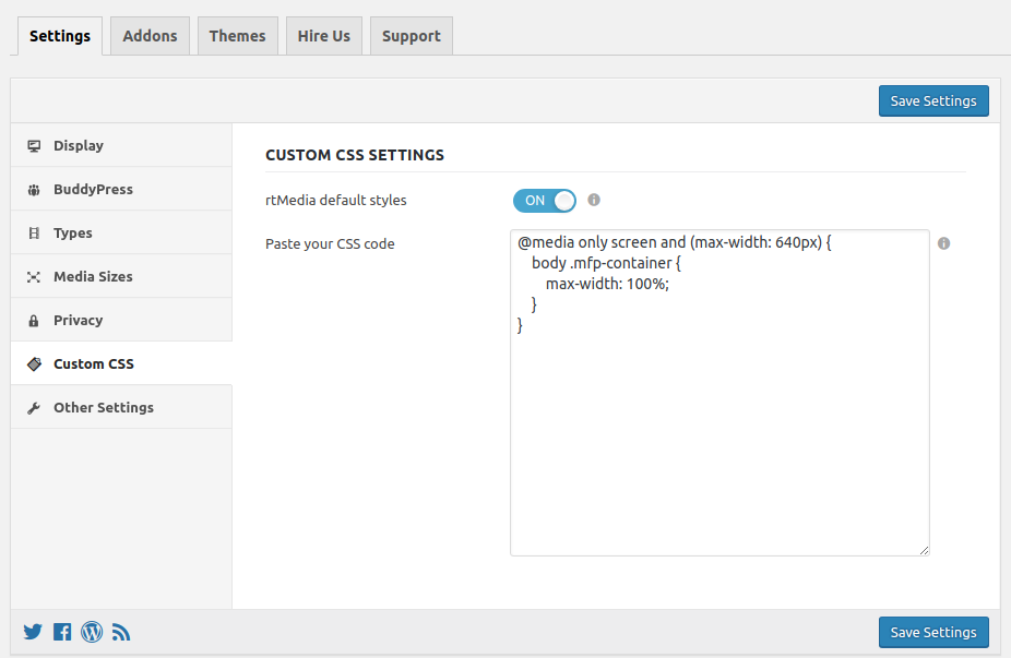 1) Go to rtMedia->Settings->CUSTOM CSS