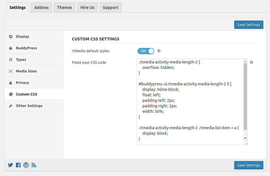 Try below piece of CSS code to Custom CSS tab under rtMedia admin settings: