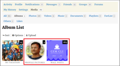 As an example, refer to the below screenshot. Two global albums, with names “Profile Picture” and “Wall Posts”.