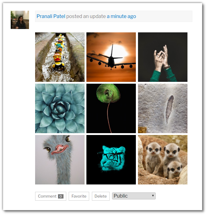 Your users can directly address one another via the BuddyPress “@mentions” feature included in the rtMedia lightbox.