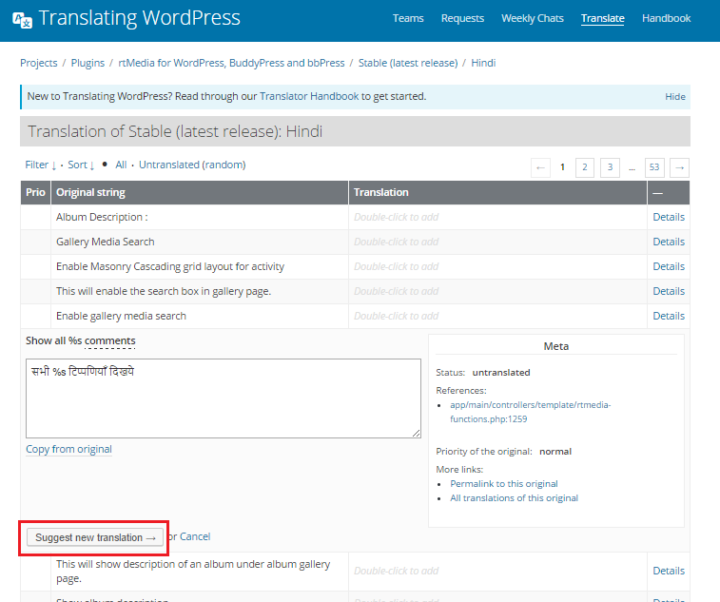 All new translations will be added to the rtMedia Core codebase during all subsequent releases.
