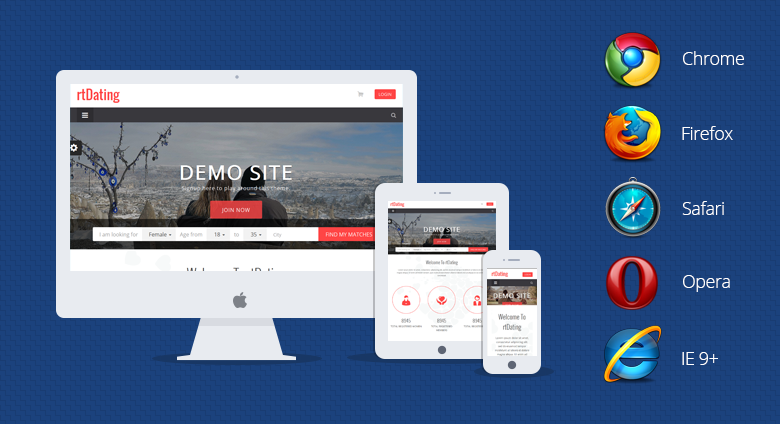 rtDating theme is responsive out of the box. It works very well with all the latest mobiles, tablets devices.