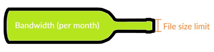 - What do the 100MB / 16 GB upload filesize limit and 5GB / 100 GB bandwidth (per month) values refer to?