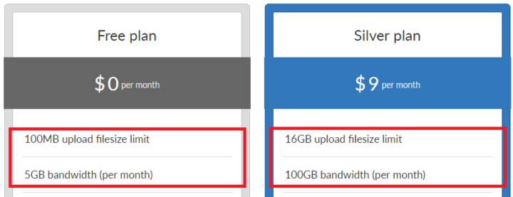 You will notice that the “file size limit” and “bandwidth (per month)” values vary according to your chosen subscription plan.